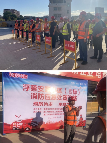 11月9日是第32個(gè)全國消防日,為全面普及消防安全知識(shí),進(jìn)一步提高在建項(xiàng)目管理人員及現(xiàn)場工人的消防安全識(shí)自防自救的處置能力,預(yù)防和減少火災(zāi)事故的發(fā)生,當(dāng)天,市政集團(tuán)以“11·9”消防宣傳日為契機(jī),深入浮蔡安置小區(qū)Ⅲ標(biāo)項(xiàng)目開展11·9”消防安全宣傳日活動(dòng),圍繞主題開展了消防應(yīng)急處置演練活動(dòng),公司副總經(jīng)理修海金、質(zhì)安部及施工、監(jiān)理單位共計(jì)五十余人參加活動(dòng)。