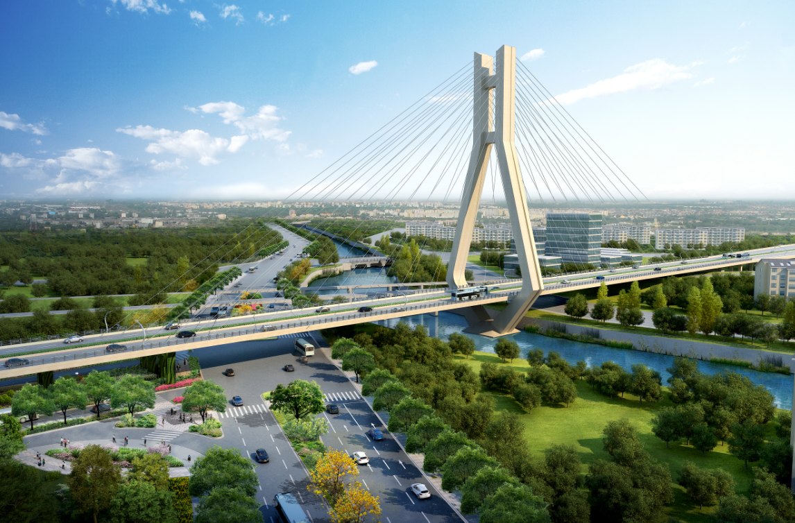 龍巖大道高架橋項目為省、市重點建設(shè)項目,是龍巖中心城市連接南北、溝通新老城區(qū)的重要樞紐,項目位于龍巖市南北交通中心軸和景觀軸線龍巖大道上,全長3395m,包含橋梁和地面道路兩大部分,其中橋梁工程總長2329m,橋?qū)?6m,包含一座190+150m獨塔斜拉索鋼箱梁主橋(主橋?qū)?6.3m),全線設(shè)計為雙向六車道,設(shè)計車速60km/h,在西陂路及人民路處各設(shè)置上下匝道,跨越雙洋路、羅龍東路、人民路、登高西路、西陂路城市主干道,項目總投資約24億元。